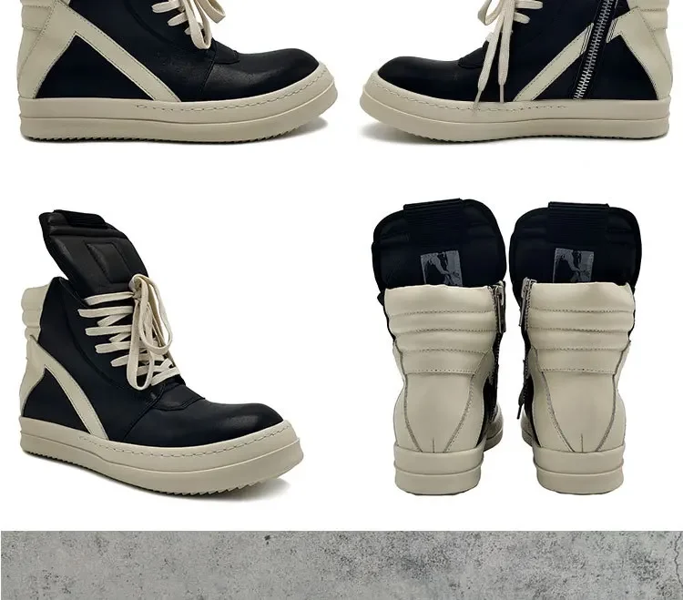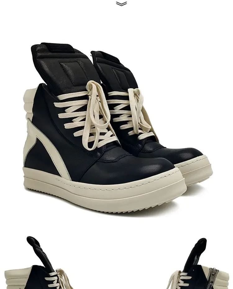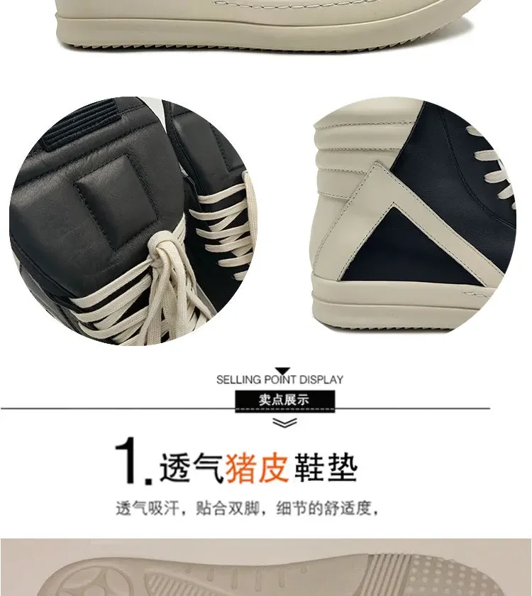 Men Cross Strappy Ankle Boots Genuine Leather Zipper Height Increasing Lace-Up Mixed Color Women Warm Original Sneaker Shoes