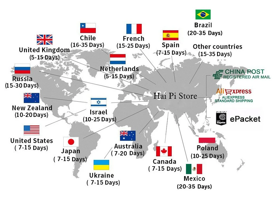 Packages from our warehouse in China will be shipped by ePacket or EMS depending on the weight and size of the product. Packages shipped from our US warehouse are shipped through USPS.